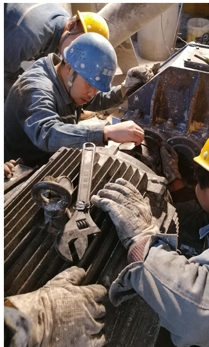 檢修人員調(diào)整減速機和電機的同心度