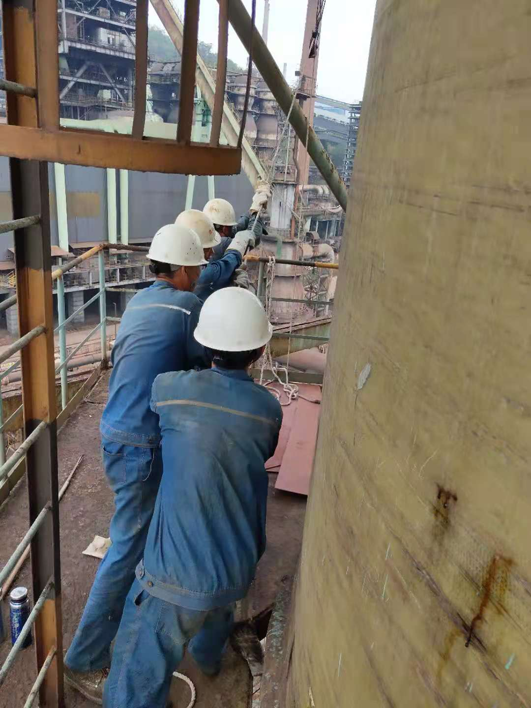 圖片2、鋼板從地面轉(zhuǎn)運(yùn)至除霧器平臺(tái)