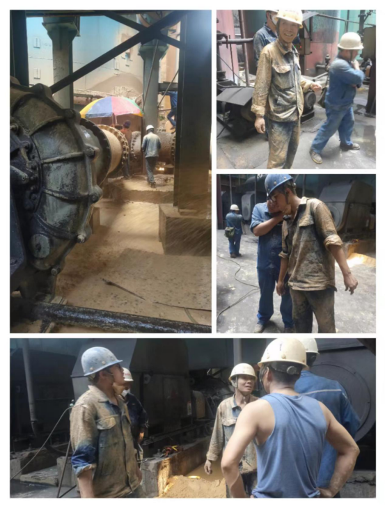 8月10日12:00左右,攀藍鼎2燒1#循環(huán)泵進口軟連接破裂,備用泵2#循環(huán)泵進口閥無法開啟投入使用,對生產(chǎn)運行造成嚴重風(fēng)險,如不能馬上消除故障,啟動備用2#泵,會導(dǎo)致出口SO2指標不受控,致使前端減產(chǎn)或停產(chǎn)。故障就是指令,出現(xiàn)故障后生產(chǎn)部立即組織檢修班長何亮、副班長蘇仕國、生產(chǎn)班長鄭義現(xiàn)場制定搶修保產(chǎn)方案。