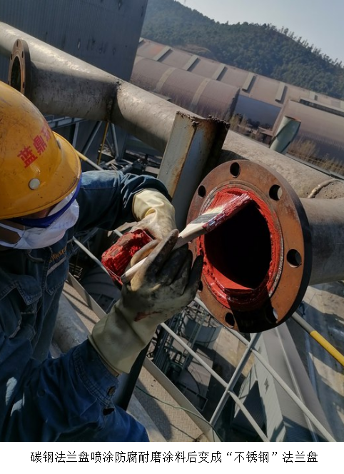 西昌藍(lán)鼎一、二期脫硫脫硝系統(tǒng)已經(jīng)連續(xù)運(yùn)行了兩年,脫硫脫硝出口指標(biāo)達(dá)到國家超低排放標(biāo)準(zhǔn)。但是部份機(jī)電設(shè)備腐蝕嚴(yán)重,比如主副塔的除霧器沖洗水管道法蘭盤材質(zhì)為普通碳鋼Q235,有部分法蘭盤已經(jīng)出現(xiàn)漏水故障,水噴到電機(jī)上可能將電機(jī)燒壞,跑冒滴漏也會被罰款,存在安全隱患。 在西昌藍(lán)鼎生產(chǎn)部的要求下,檢修班長組織骨干人員到現(xiàn)場商議處理方案,因2205不銹鋼法蘭造價高昂,更換成本高,最終確定采用防腐材料加耐磨材料碳化……